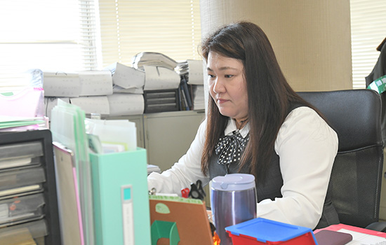 事務職の中では一番の若手…と言うこともあり、学ぶことが沢山あります。伝票作業や各部署への連絡事項など複雑な仕事も多く大変ですが、分からない事があれば必ず先輩に質問し、自分の中でしっかりと消化するように心掛けています。